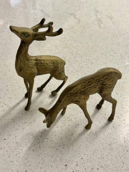 Vintage Brass Deer Figurine statues. Set of two vintage rustic handcrafted brass buck and doe figurine statues. These two have graced my brass collection for some time. I have kept them unpolished as some people prefer them that way. Of course, if you like shiny brass, it will be easy to polish them to the natural and beautiful original shine they will have. Postage varies depending on your location. Sending from Queensland, Australia.