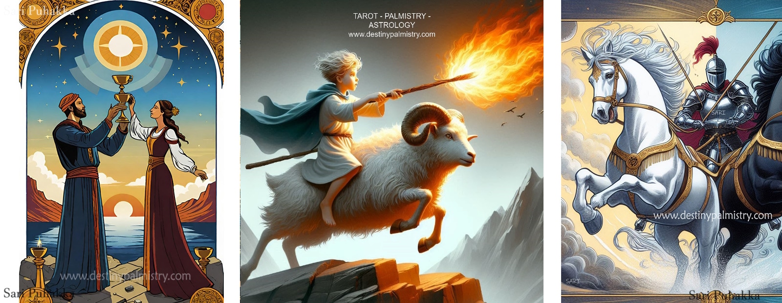 Remember, these combinations offer insights into finding harmony between different aspects of your life. Trust your inner wisdom as you navigate challenges and opportunities. [Go back to Tarot-Scopes page here.]
